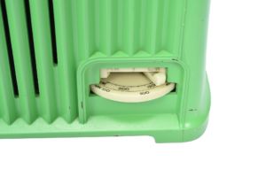 Also known as “The Sobellete” or the jelly mould. Introduced in 1949 and available in five different colours in a ribbed style bakelite case. The radio was able to switch and tune on the long and medium wavebands. An internal ferrite rod aerial was also featured for easy radio reception.